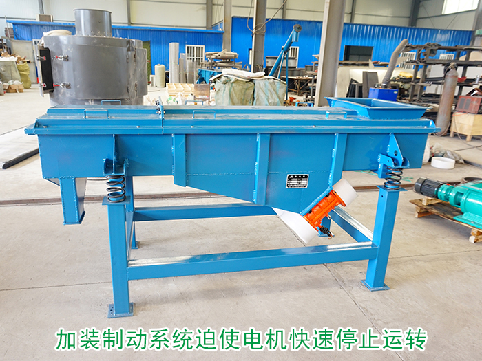 篩分機停機時因為慣性會在某個特定時間段振動頻率與篩機本身頻率一致從而發生共振,可在篩分機上加裝制動系統在停車時給振動電機加入反向電流,迫使電機快速停止運轉,使振動頻率跳過篩機自身固有振動頻率從而達到防止共振的目的。